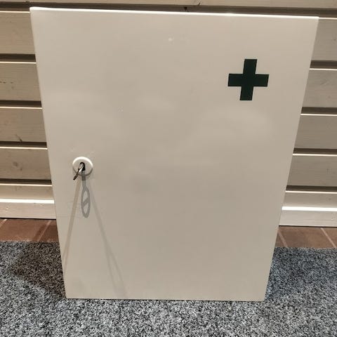 Hyväkuntoinen lääkekaappi alta pois, mahdollisuus toimitukseen PK seudulla mutta tästä erikseen sovittava.
