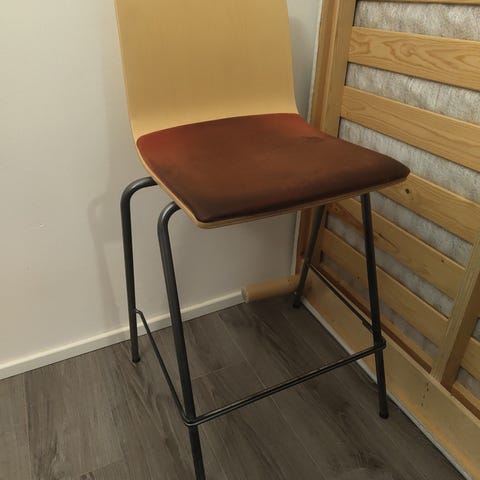 Pehmusteen saa halutessaan kiinni tarroilla, tarroista ei ole irroitettu suojapapereita.