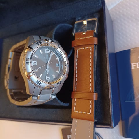 Festina miesten rannekello, jossa on ruskea nahkaranneke ja neliönmuotoinen kellotaulu. Kello toimitetaan alkuperäisessä Festina-laatikossa. Uusi. Patterit vaihdettu kesällä 2025.