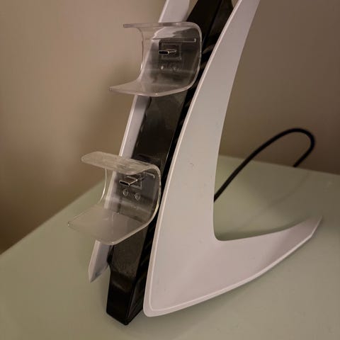 Ps5 ohjaimien lataustelakka. Kahdelle ohjaimelle, mutta vain toinen portti toimii.