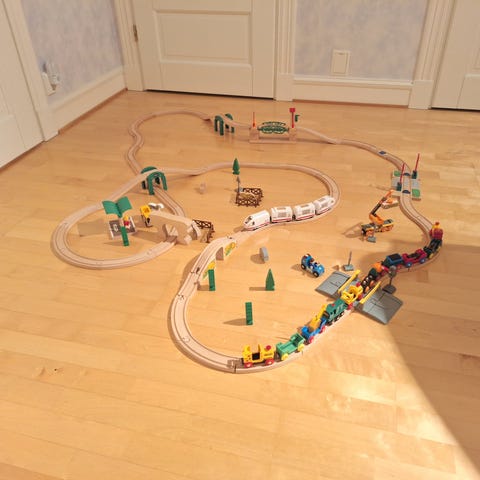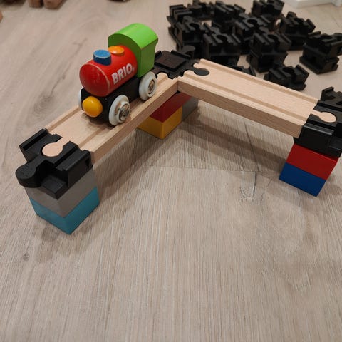 Alkuperäinen TOY2 builder set large - adapterisetti, jolla voit liittää legot, dublot ja puisen junaradan (esim.IKEA, Brio) yhteen, ja rakentaa esim. korkeita siltarakennelmia tms.