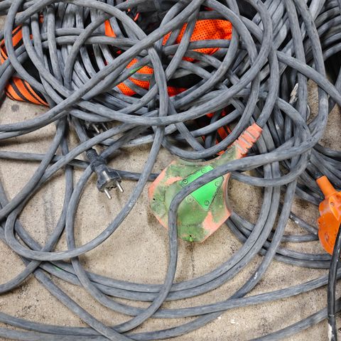 Kuminen jatkojohto, pituus 50 metriä, kaapelin poikkipinta-ala 3x1,5 mm². Jatkojohdossa on IP44-suojaluokitus ja se on tarkoitettu 230 V, 16 A käyttöön. Yhdestä rasiasta puuttuu kansi. Mitattu ja toimivaksi todettu. Paino 6,1 kg.