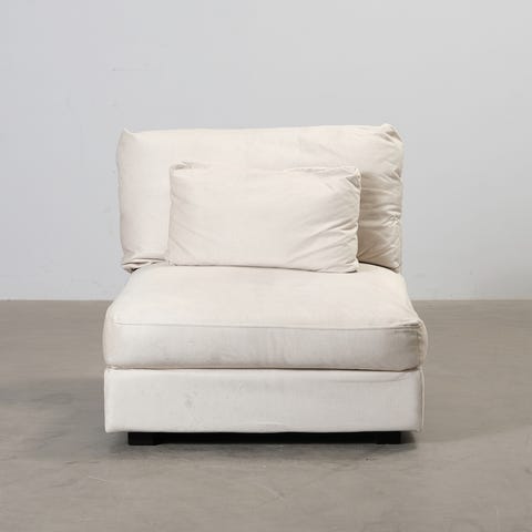 Voit yhdistää Dubai sohvamoduulin sarjan muihin osiin tai käyttää sitä nojatuolina. Beige samettikangasverhoilu ja puiset jalat alla.