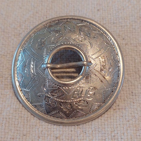 Etelä-Pohjanmaan, Härmän kansallispuvun hopeinen helysolki. Kultaukset kuluneet. Leimat on, viimeinen kuva. Kansallispuku, koru. Uuden tuliterän soljen hinta näkyy Perinnetekstiilin sivuilla olevan 455€
