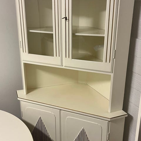 Vanha kulmakaappi vitriini