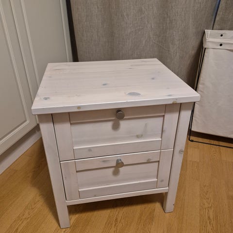 1 kotona puinen valkoiseksi maalattu yöpöytä/lipasto 10e. 1 puinen yöpöytä/lipasto, laatikoiden pohjalla ajan kulumaa 5e. Kevyet, helposti vedettävät laatikot. Voidaan noutaa keskustan läheltä, en voi toimittaa pöytiä.