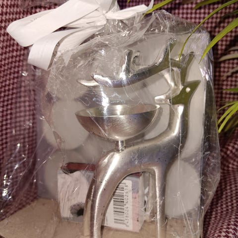 Pentikin uusi hopeoitu poro ja 24 kpl kynttilöitä, ovh 130 e