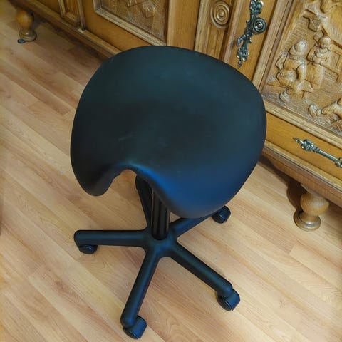Työergonomiaa parantava satula osa työtuoliin. Sopii kovin tuolin päälle ilman ”alaosaa”. Pehmeälle tuolille suosittelen ostamaan sen lisäosana.