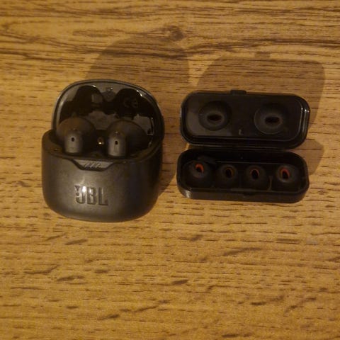 JBL Tune Beam kuulokkeet. Saatu lahjaksi viime jouluna, jäänyt kokonaan käyttämättä.