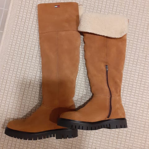 Myydään uuden veroiset Tommy Hilfigerin ylipolvensaappaat.