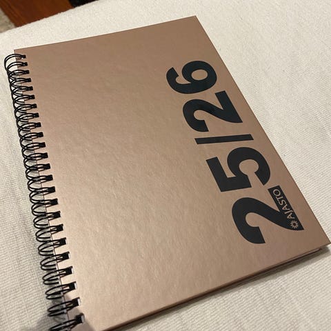 Pöytäleader 2026 a5 kalenteri kaikilla herkuilla, keinonahkakannet, kynä, muistio