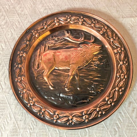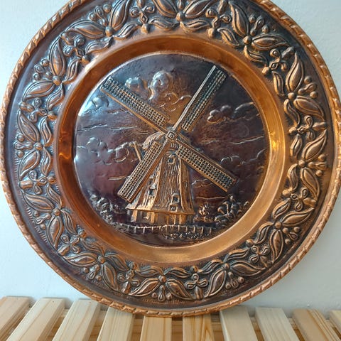 Hyväkuntoinen taulu / seinälautanen / kuparityö