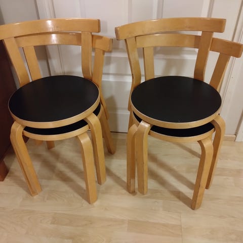 Jämäkässä kunnossa olevat tuolit. Käytön jälkiä on. Kaikki kerralla.
