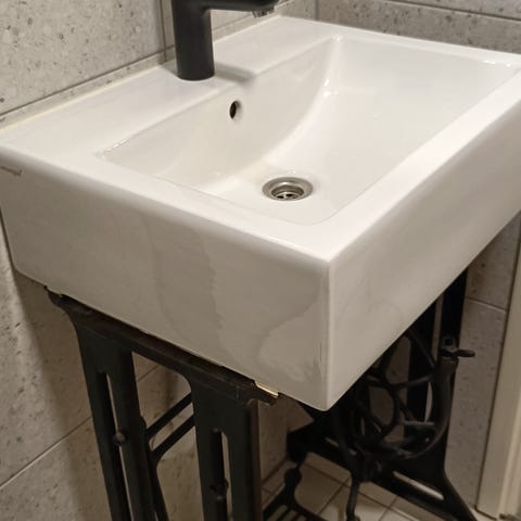 Itsestään seisova siirrettävä käsipesuallas jalkapainikkeella.