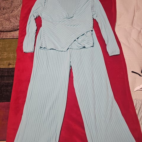 Tässä tarjolla hennon vaaleanpunainen olo- ja/tai kotiasu, jonka koko on L. Ostin vaatteen Woman´secret -myymälästä Madeiralta, ja se osoittautui aivan liian suureksi, joten tässä tärkeimmät mitat. Yläosa: kokonaispituus niskasta 62 cm, kainalonympärys 120 cm, hihan pituus 47 cm ja hartialeveys 62 cm. Housut: kokonaispituus 104 cm, vyötäröstä haaraan 30 cm, vyötärön ympärys 74 cm, joka venyy 100 cm:iin, lantion ympärys 120 cm, lahkeen ympärys 46 cm. Materiaali on tekokuitua, pehmeää, joustavaa ja hieman kiiltävää, sisäpuolelta ohutta nukkaa. Loistava joululahja!