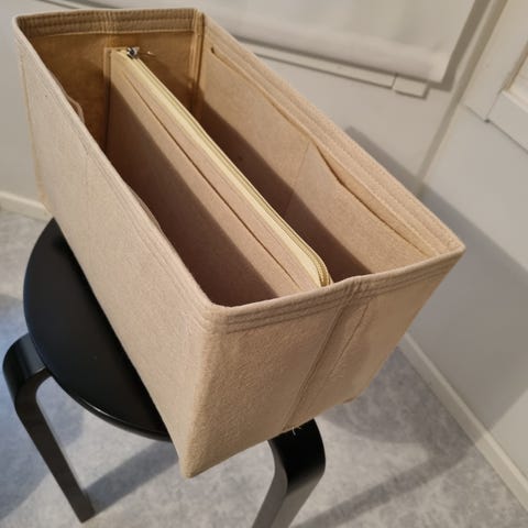 Organisoija laukkuun koko 29x15x17. Beige väri. Huopaa. Vesipullolle oma Kolo. Nouto Lpr tai toridiili.