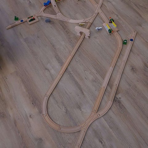 BRIO-junarata-setti tasoristeyksellä, kahdella seisakkeella ja alikulkusillalla