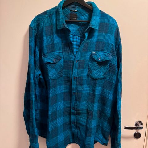 Miesten XL kauluspaita, sininen raidallinen. Nouto tai postitus