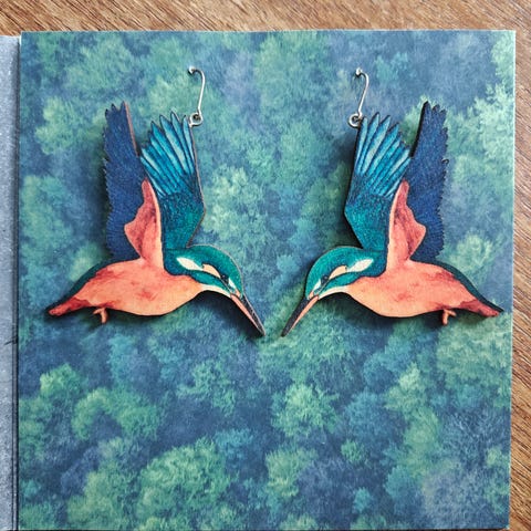 Kuningaskalastaja vanerikorvakorut PinjaPuu