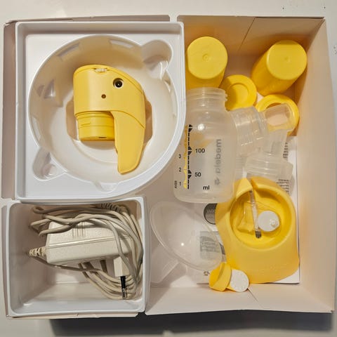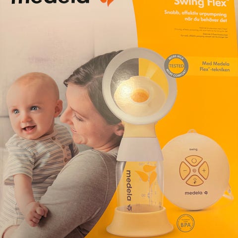 - Medela Swing sähkökäyttöinen rintapumppu. Tätä on käytetty paljon. Ei toimi enää pelkällä akulla eli pitää olla kiinni verkkovirrassa. Tähän ostettu 6kk sitten uudet Medela PersonalFit Flex Liitinosat.