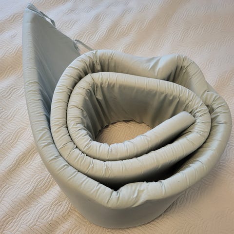 Käytetty, mutta yleisilmeeltään siisti reunapehmuste pinnasänkyyn. Pari pientä tahraa löytyi, eivät lähteneet normipesussa.