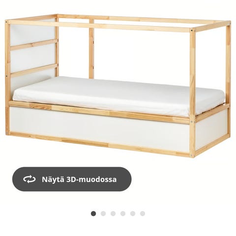 IKEA Kura käännettävä sänky puurunkoisena [ https://www.ikea.com/fi/fi/p/kura-kaeaennettaevae-saenky-valkoinen-maenty-80253809/ ]. Sänky on suunniteltu lapsille ja soveltuu yhden hengen käyttöön.