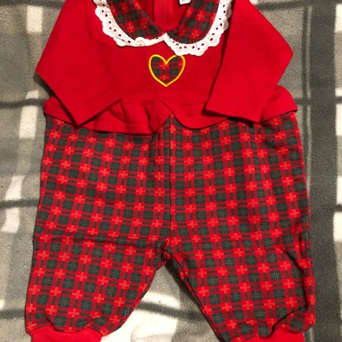 Vauvan jouluasu, koko 6kk eli noin 62-68. Meillä mennyt 4-6 kk vauvoille. Takana nepparit (kuva 2) niin helpottaa pukemista.