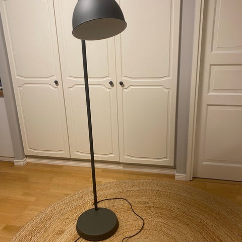 Myydään tummanharmaa Ikean Hektar lattiavalaisin.