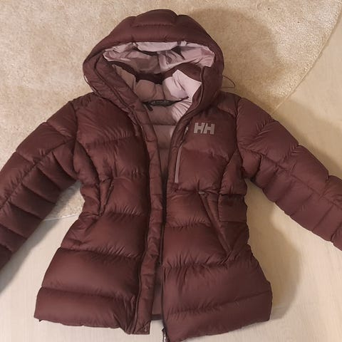 Todella vähäiselle käytölle jäänyt Helly Hansenin talvitakki. Väri on violetti/vaalea lila. Takin hihoissa on heijastimet, jotka saa käännettyä piiloon.