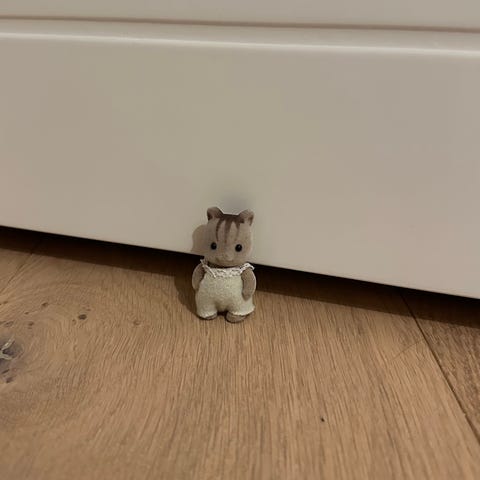 Sylvanian Families oravatyttö. Mukaan saa halutessaan alkujaan jollekin muulle lelulle kuuluneen unimaskin.