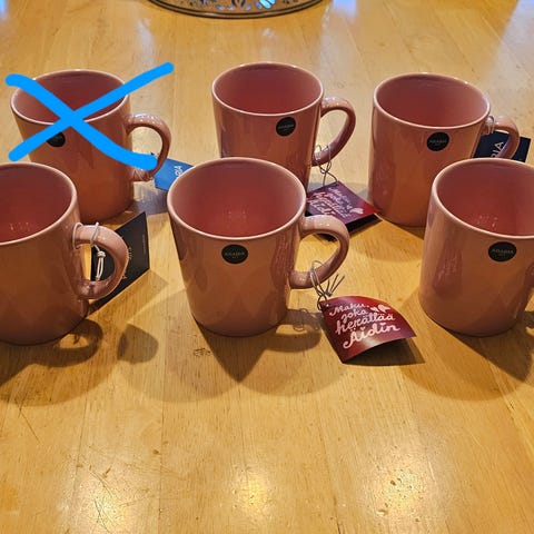 Yhdessä pullossa kaulassa pieni lohkeama.