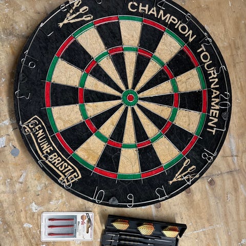 Ostan darts-taulun ja valon. Ei tarvi olla priimakunnossa. Voit tarjota joko yhdessä tai erikseen.
