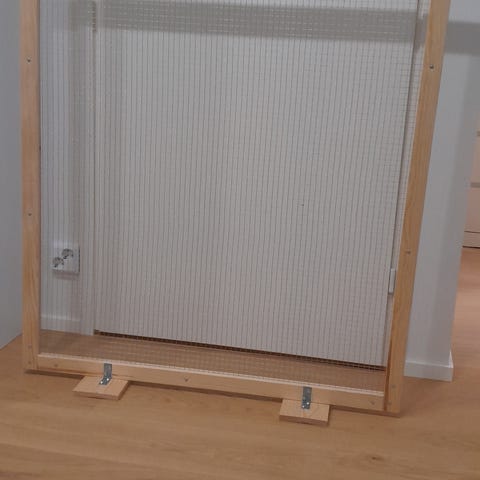 Annetaan käytetty hiekkalaatikko. Oven luukku löytyy myös, saa paikoilleen.
