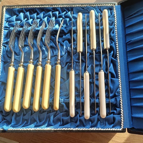Kuvan mukainen vanhat alkuruoka aterimet.