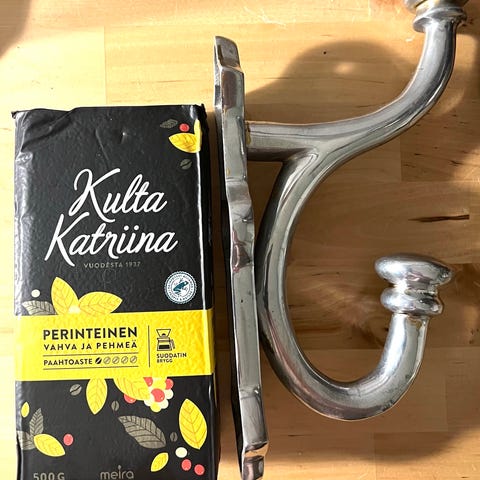 1900-luvun puolesta välistä oleva metallinen hyväkuntoinen naulakko, iän mukaista kulumaa jonkin verran. Painava.
