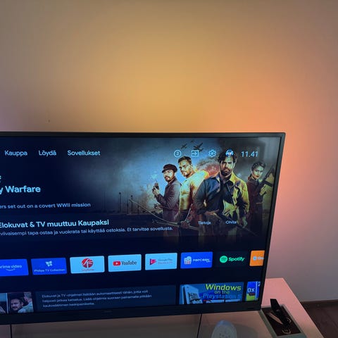 the tv works perfectly fine. good quality image and sound. comes with remote and power