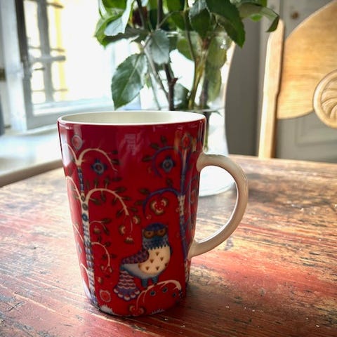 Iittala Taika mustavalkoiset isot mukit. Valmistettu keraamisesta materiaalista ja niissä on yksityiskohtainen taikametsäkuvio. Todella siistissä kunnossa, vaikka käytössä olleet useamman vuoden.