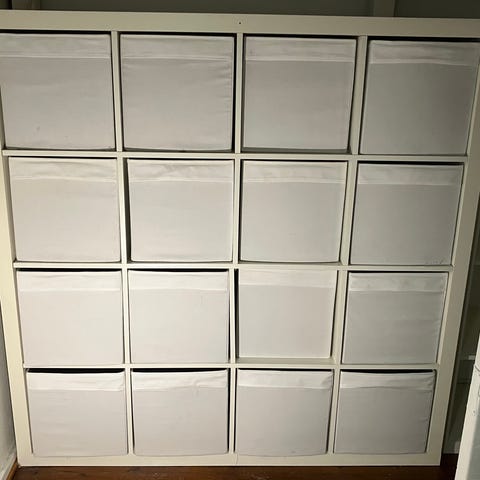 Hyväkuntoinen vaaleanpunainen Ikean Kallax. Kaksi vetolaatikkoa ja yksi kaappi. Toisessa päädyssä naarmuja (kuva) muuten Hyväkuntoinen. Vain nouto.