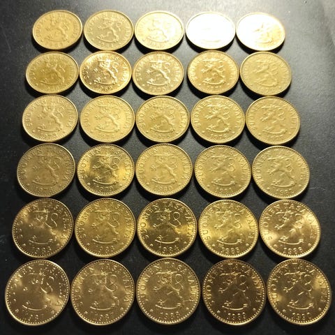20 p vuodelta 1963, tavallisia käytössä olleita 50 kpl erä. Toimituskulut kirjeenä 3,50 eur.