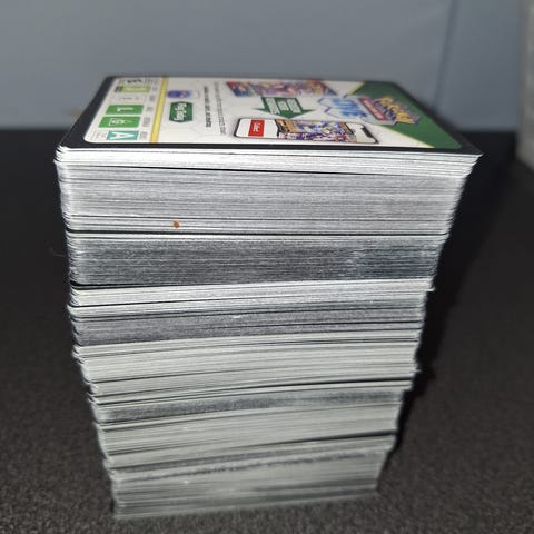 Five hundred and thirty one code cards, all unused. From 2022-2025, so mostly Sword&Shield and Scarlet&Violet era, although there a couple rogue Sun&Moon cards as well. A big majority is from booster packs, but there are a couple ETBs as well, such as Marnie ETB, Celebrations, Advent calendar etc