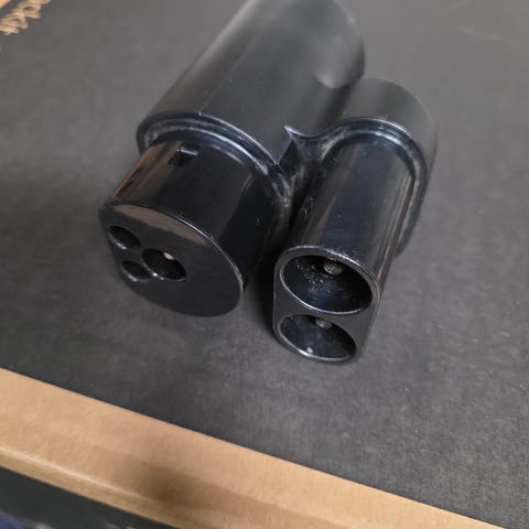 Teslan Chademo-adapteri lataukseen, eli tällä voit käyttää Chademo-pikalatureita. Joskus näppärä, koska nämä laturit eivät ole juuri käytössä.