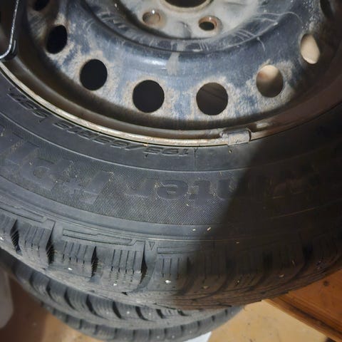 Neljä talvirengasta peltivanteilla pintaa kuten kuvissa näkyy. Olleet Toyotan alla. Valmistus vuotta en osaa katsoa. En lähettele.