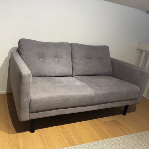 165 cm ja 225 cm leveät valkoiset nahkasohva. Sohvassa kulumaa istuintyynyissä. Pahin vaurio kuva. Muutoin kunto hyvä.