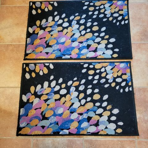 Myydään punasävyinen, jouluaiheinen, pyöreä kuusen alusmatto. Halkaisija on 79cm. Vallila