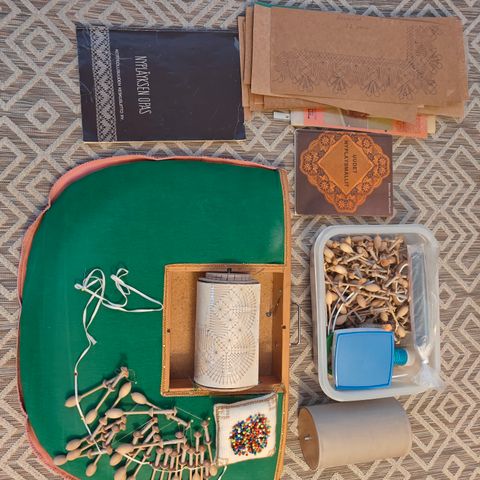 Hyväkuntoinen tyyny ja 37 nypylää. Kantokassi mukaan. Nouto ja käteismaksu.