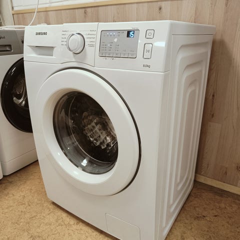 Samsungin pyykinpesukone 8 kg täyttömäärällä.