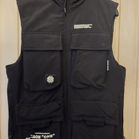 North Sky-merkkinen miesten sortshell-liivi vetoketjullisilla taskuilla ja helmassa nyöri.