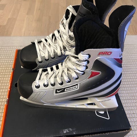 Bauer Jääkiekko luistimet, koko 41. Luistimissa musta väritys ja valkoinen terä. Soveltuvat jääkiekkoon. Erittäib laadikkaat luistimet joita käytetty 5 kertaa. Hankittu jääkiekkoilun ammattivalmentjan suosituksesta. Uutt vastaava tuote