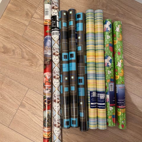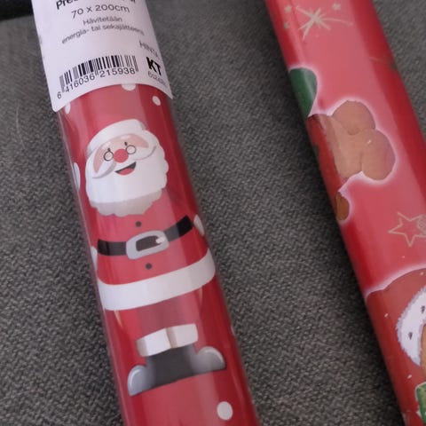 Kaksi lahjapaperiarkkia.