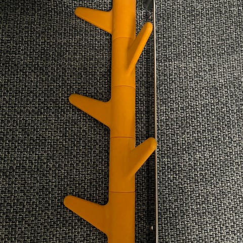 Metallinen tyynynaulakko tai teline, jossa on neljä pitkää tankoa. Valmistaja on Suomalainen FiQure, ja se on suunniteltu moderniin sisustukseen sopivaksi.Naulakko on hyvässä kunnossa ilman näkyviä vikoja tai kulumia. Musta väri on säilynyt hyvin, ja rakenne on tukeva. (Tyynyt eivät kuulu pakettiin mukaan).
